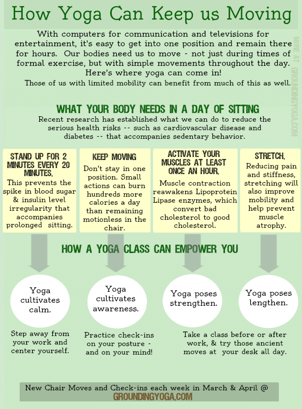 Our next inquiry is how the human body is meant to move. We’re all pretty well aware of the harms that have grown over the past fifty years… no need to dwell upon the scary, life-threatening risks too much. Let’s get to solutions. What can we do– all day long– to be healthy? Yoga moves and yogic philosophy can be a huge help here.