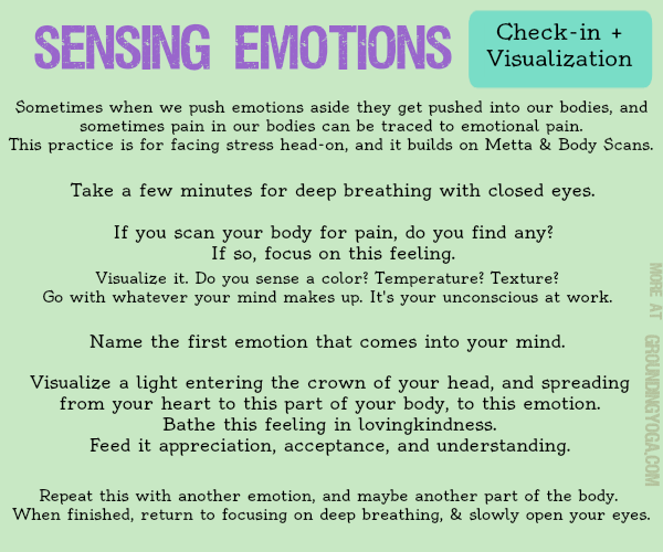 The idea of sensing emotions in connection with the body is one understood by Eastern traditions for a long time and is gaining further medical and scientific acceptance in the West. This particular exercise pulls from both traditions.